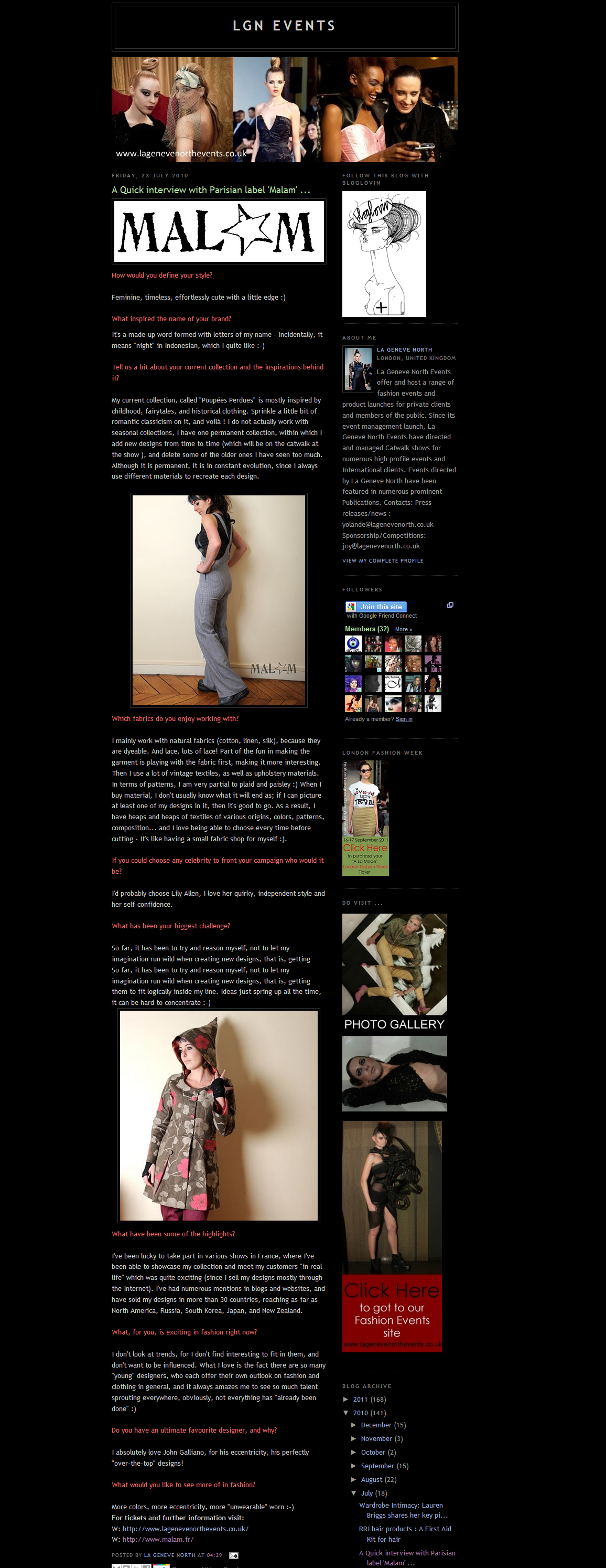 Publication MALAM - Vêtements créateur Made in France - LGN Events 23/7/2010
