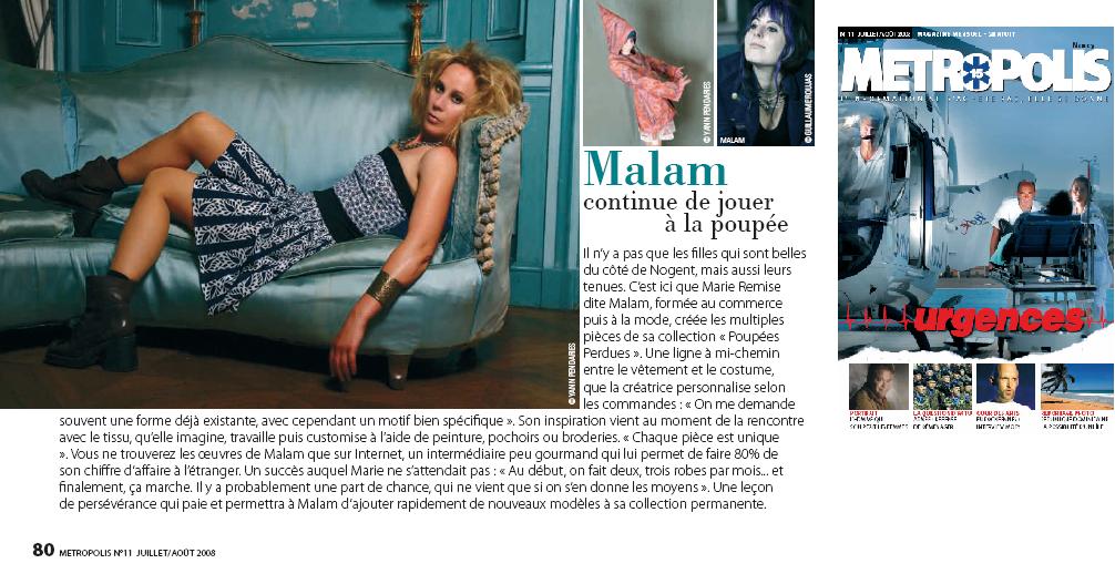 Publication MALAM - Vêtements créateur Made in France - Metropolis 07/2008