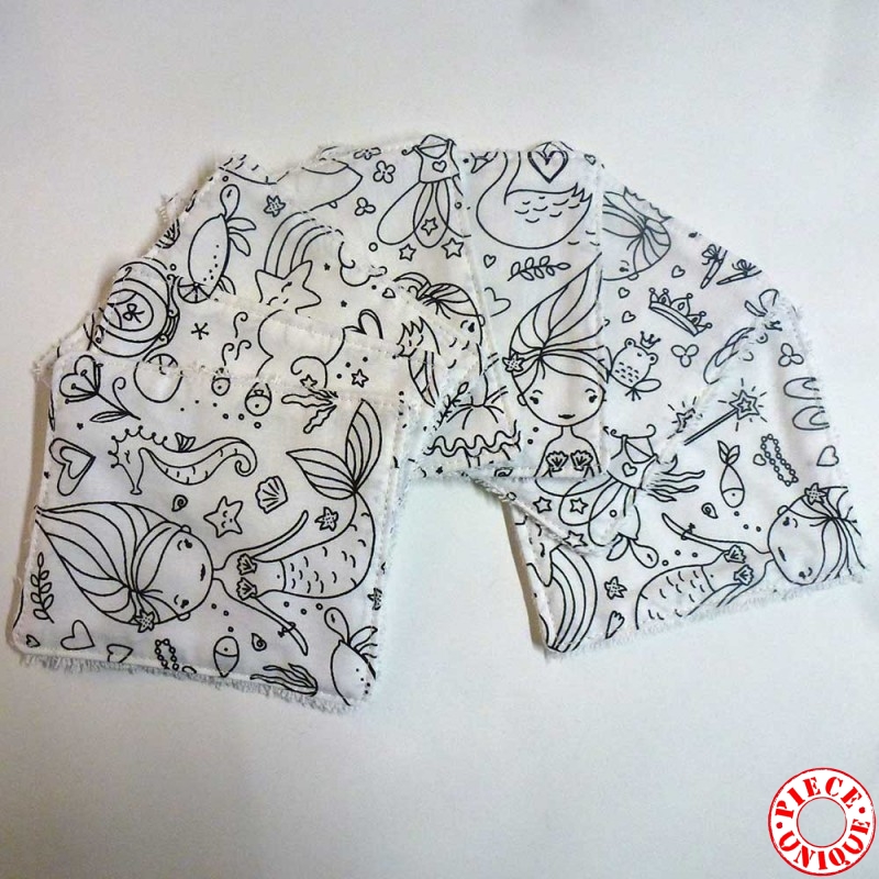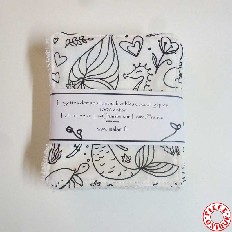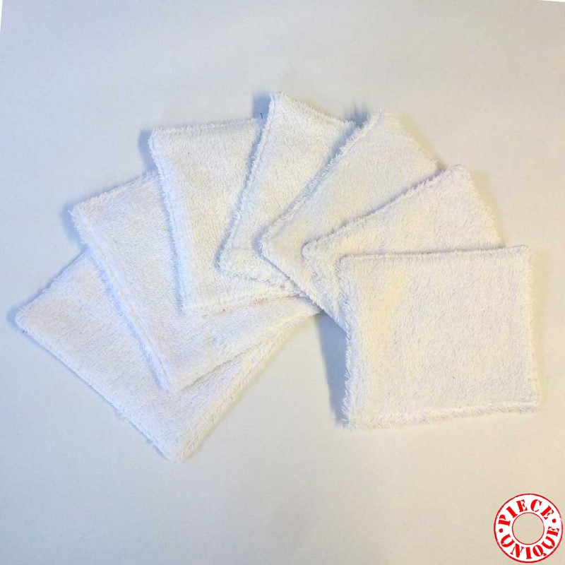 Assortment of 7 washable Zero waste face wipes, in retro vintage printed cotton. Lined with soft off-white bamboo terry fabric. Dimensions : about 10x12 cm To use instead of your disposable face cotton and wipes, and washable by machine up to 40° (for the colors). FOR MORE FABRIC CHOICES, CLICK HERE