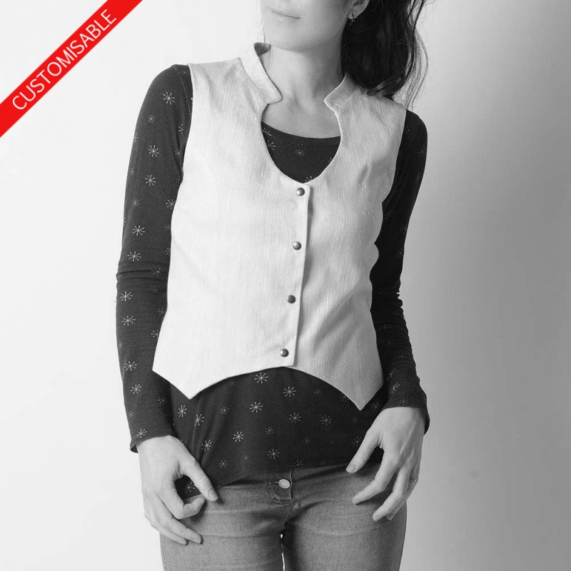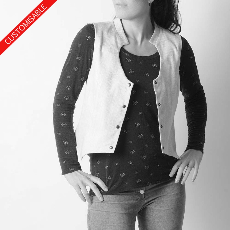 Gilet femme sans manches, réalisé à vos mesures, dans le tissu de votre choix.
