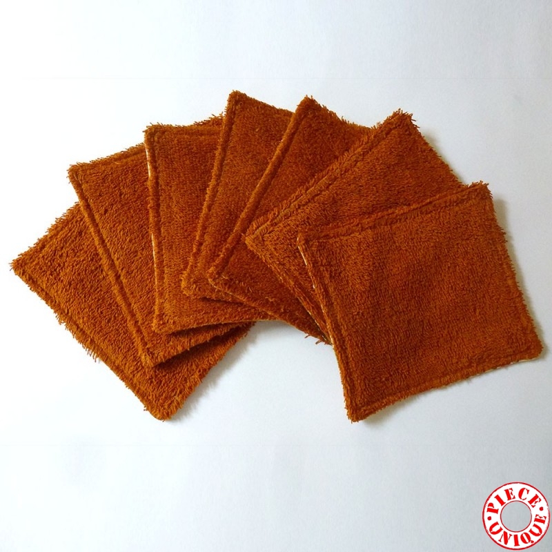 Lot de 7 lingettes lavables Zéro déchet, en tissus vintage coton imprimé, doublées de tissu éponge coton orange. Dimensions : env. 10x12 cm A utiliser en remplacement de vos lingettes et cotons jetables, et lavables à 40° avec votre machine habituelle. POUR D'AUTRES TISSUS, CLIQUEZ ICI