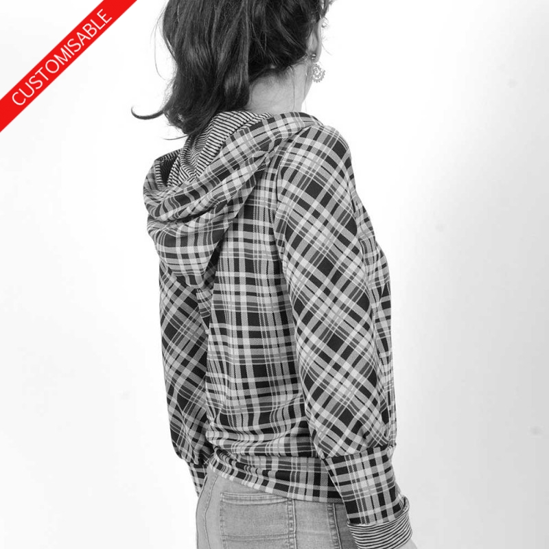 Sweat ou pull à capuche réalisé dans votre taille, et dans les tissus jersey de votre choix.