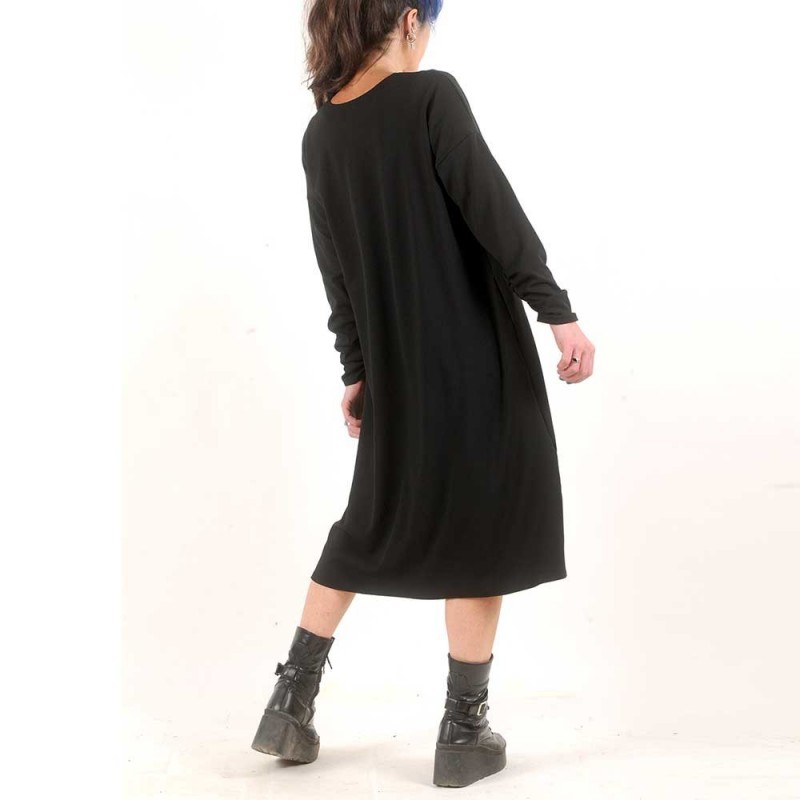 Gilet ouvert long et ample, dont les manches longues sont froncées dans le bas, réalisé en jersey milano noir à texture crêpe.