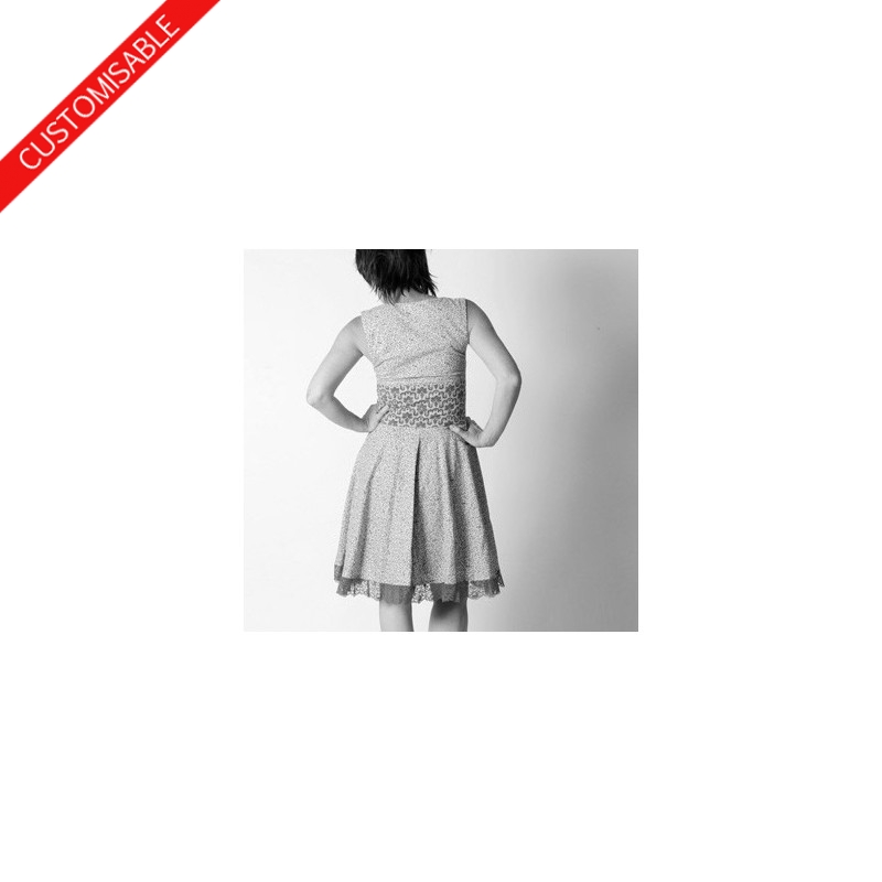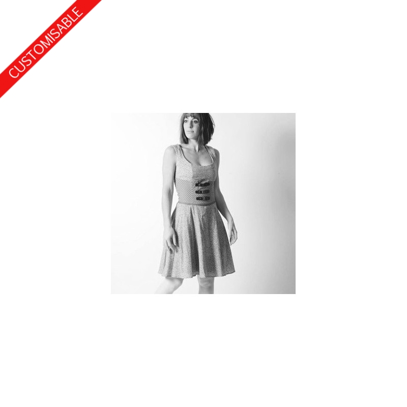 Robe sans manches, à empiècement de forme corset, réalisée dans votre taille, et dans les tissus de votre choix.